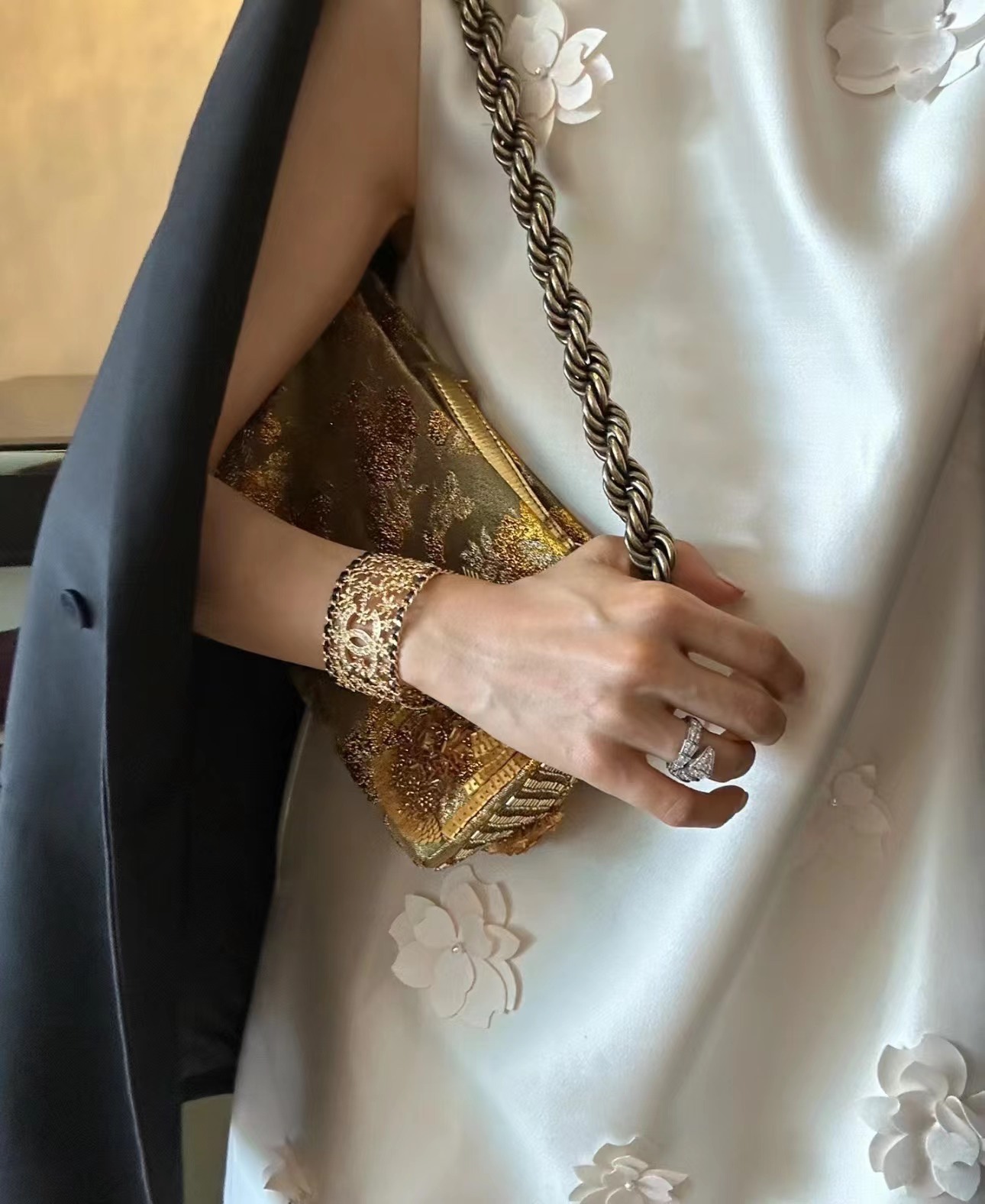 Dainty Chanel Camellia Cuff Bangle Bracelet