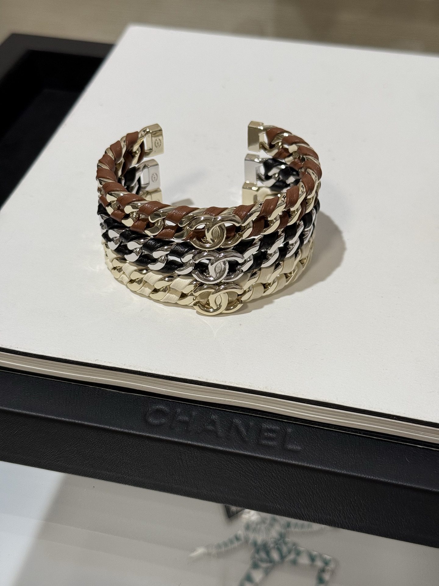 Chanel 26C Leather with Chain Bracelet Cuff Bangle