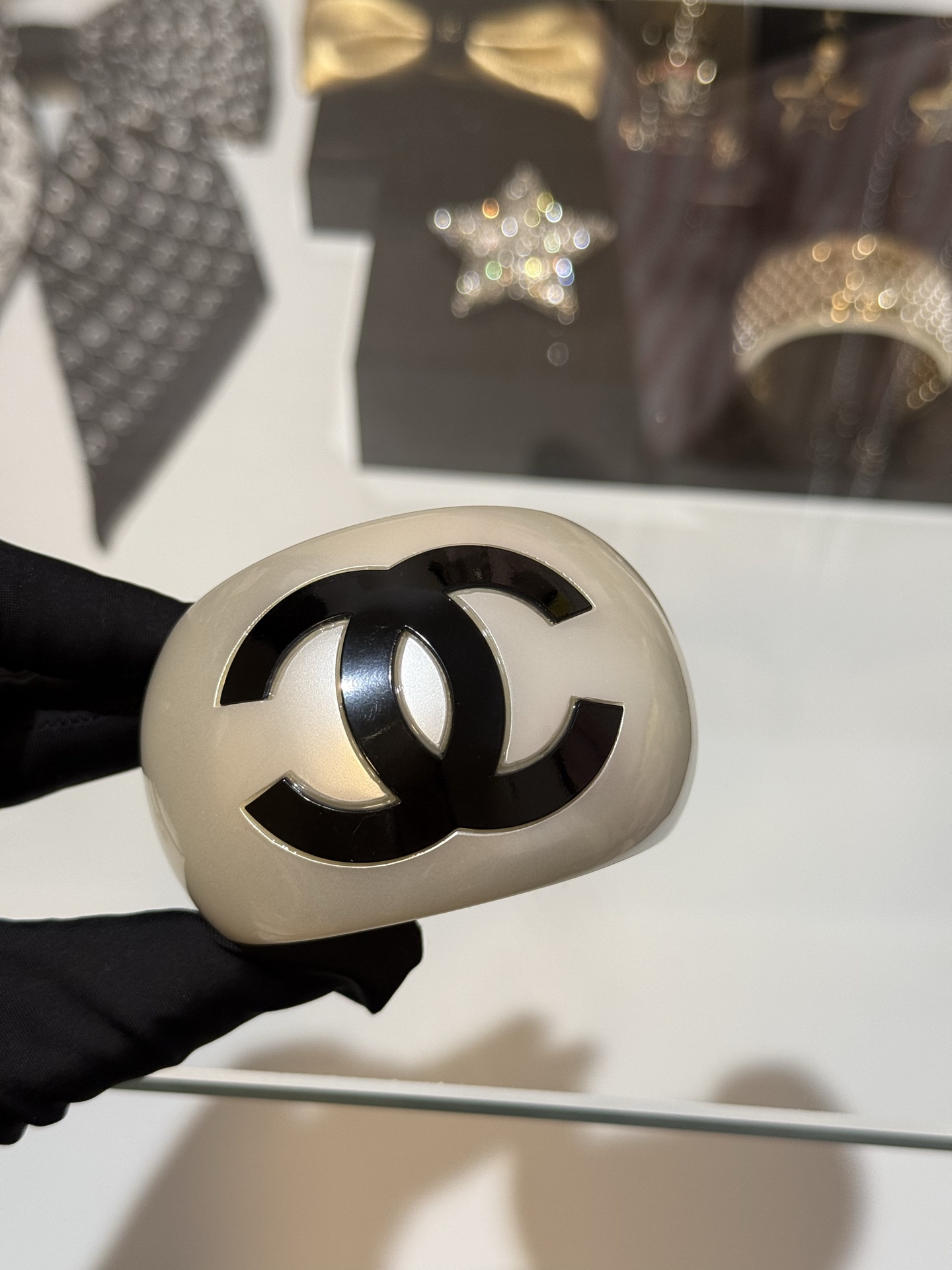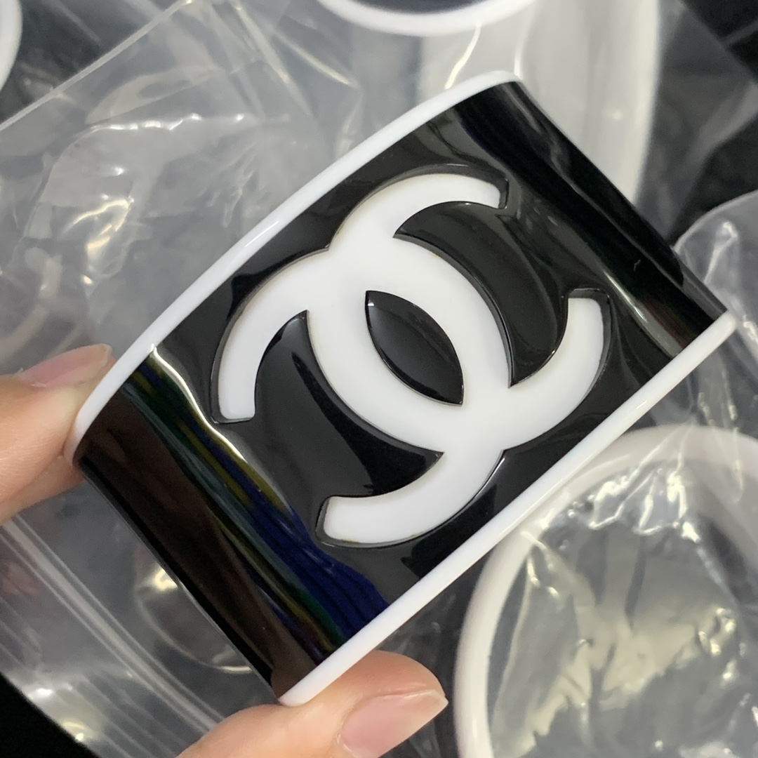 Personality Chanel Black White CC Wide Bangle Bracelet