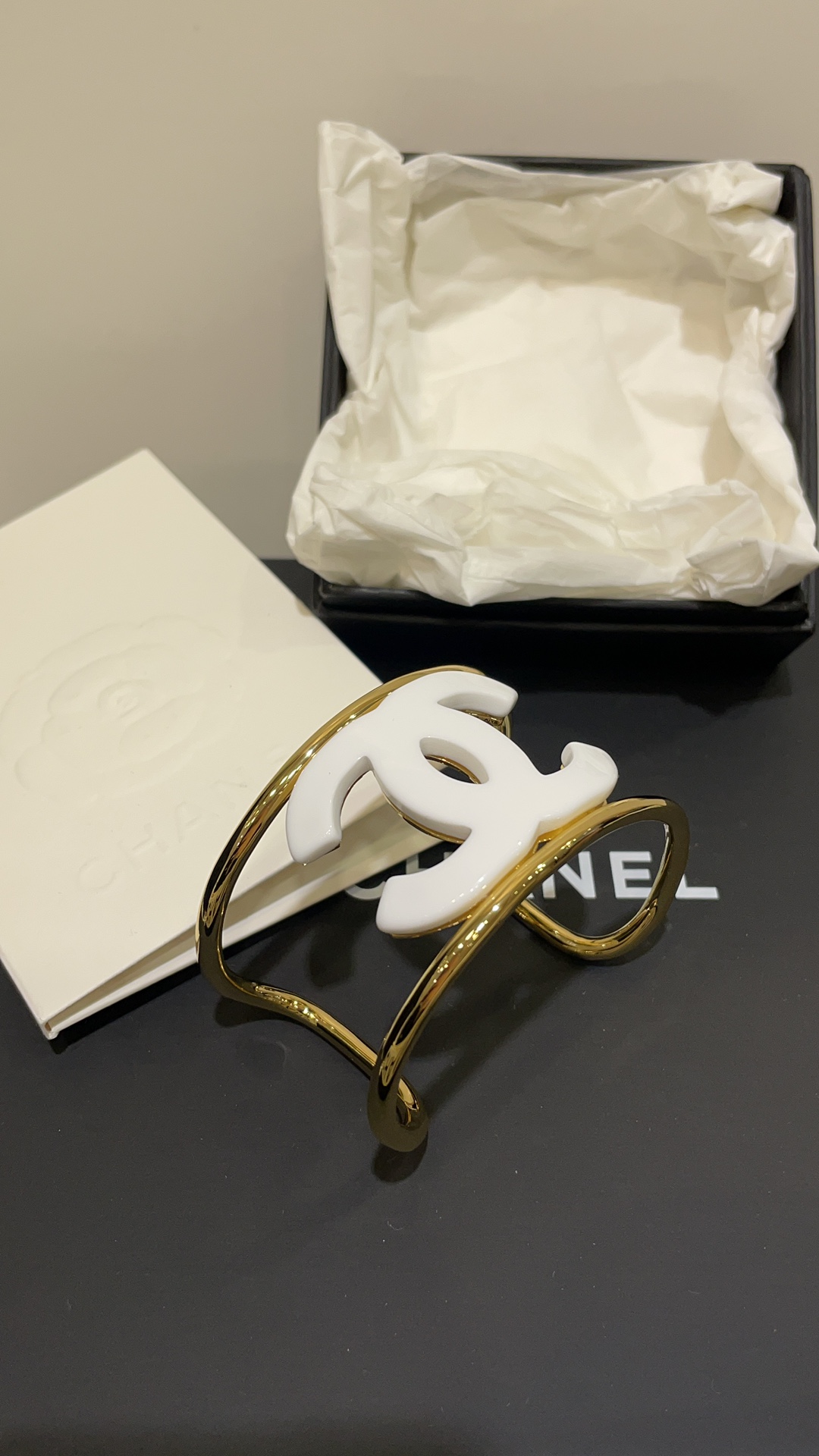 Chanel Funky Personality White CC Gold Cuff Bangle Bracelet