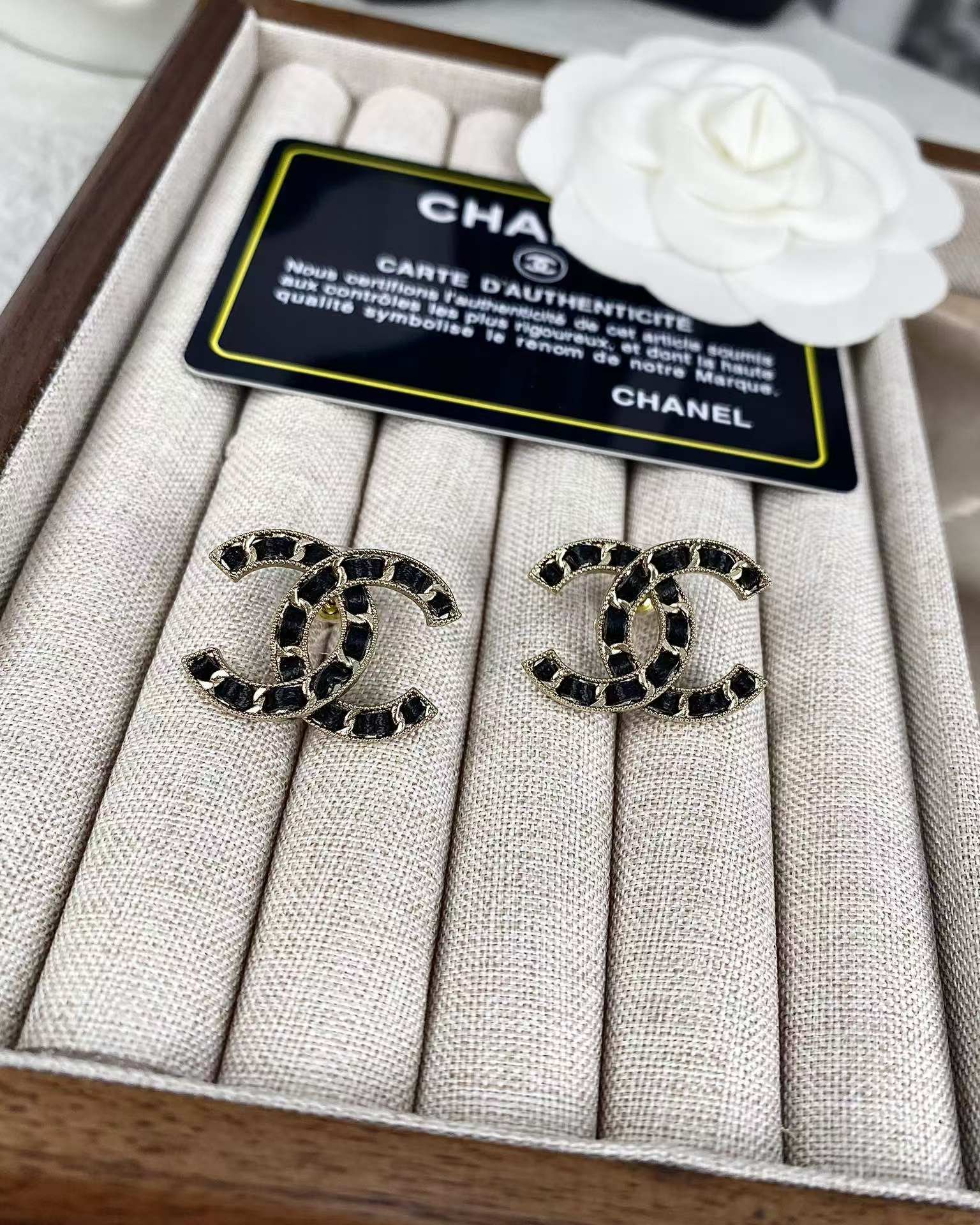 Chanel Black White Enamel Chain Tassel with Double C Earrings