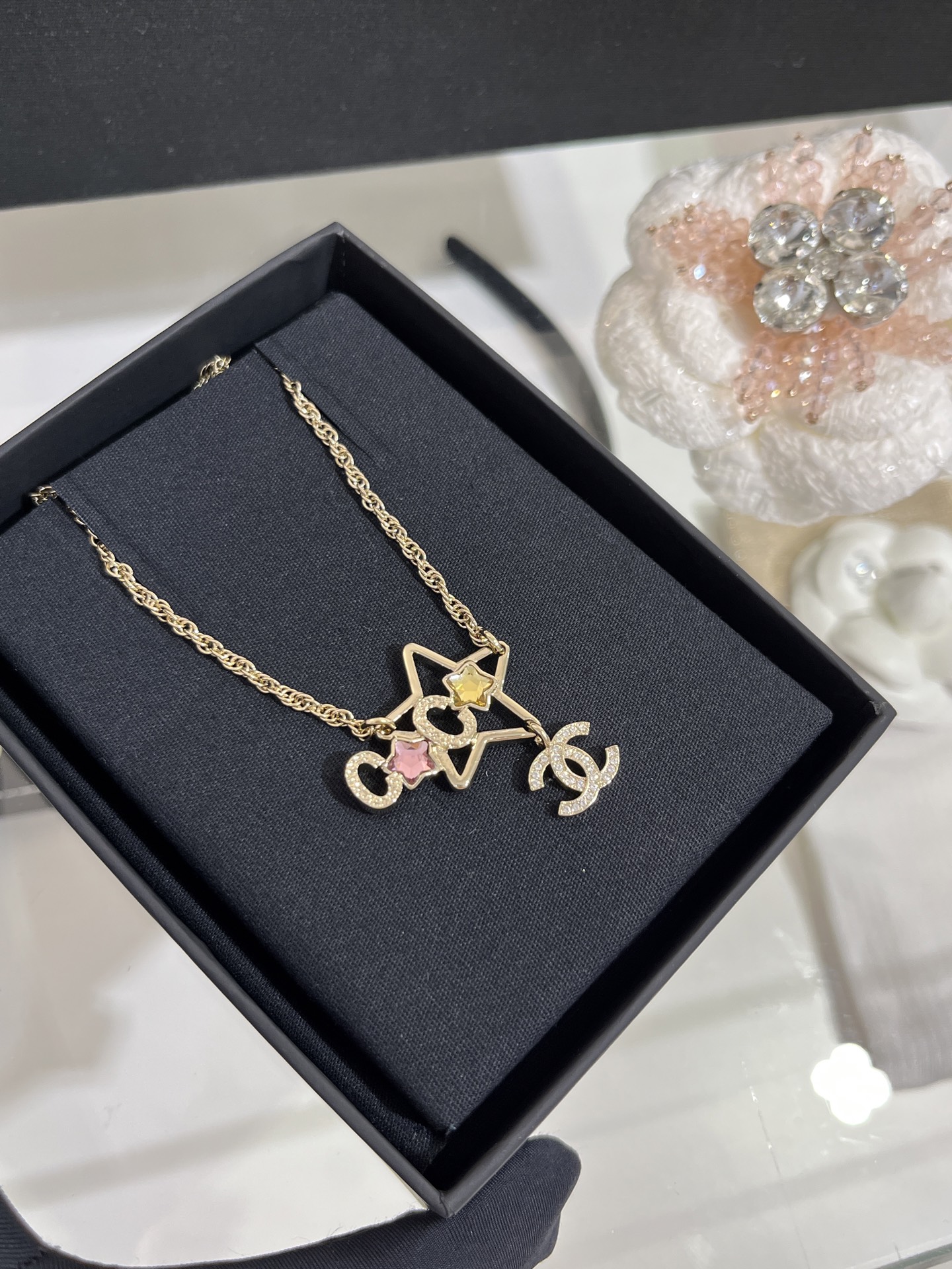 Chanel Rhinestone Star Coco CC Necklace