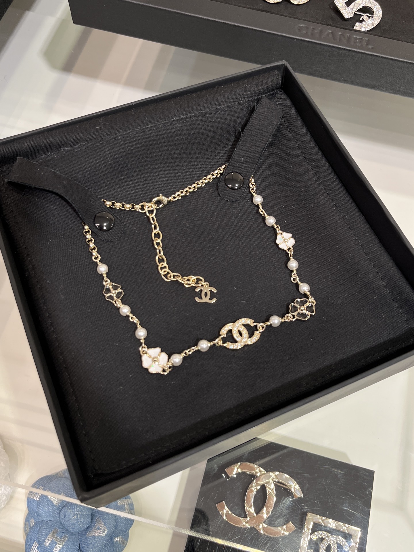 Dainty Chanel Enamel Camellia Necklace
