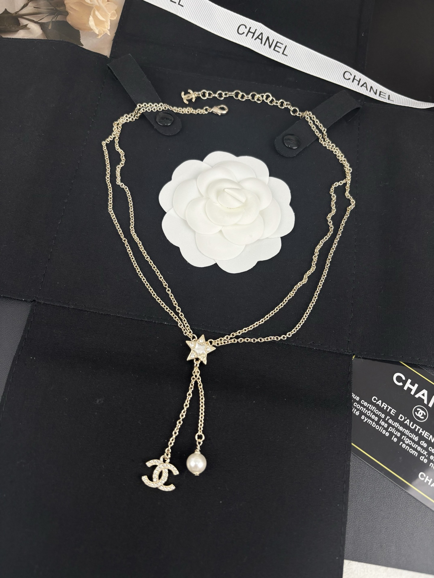 Two Layers Chanel Star with CC and Pearl Tassel Necklace