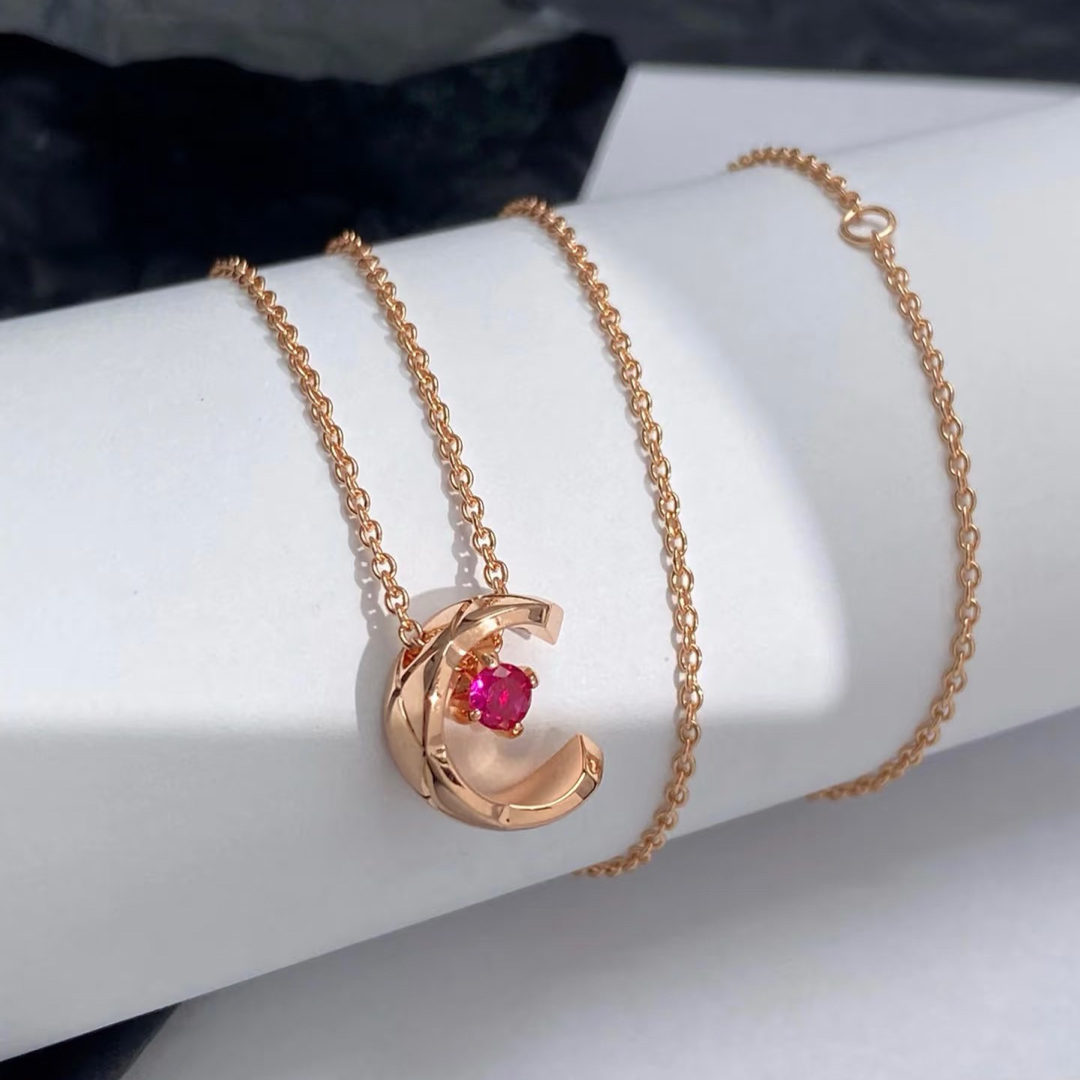 Chanel Coco Crush Rose Gold Moon Star Red Diamond Necklace