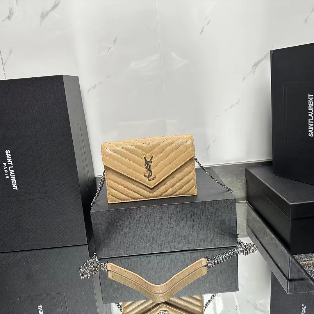 YSL Chain Shoulder Bag - Beige Leather & Silver Hardware